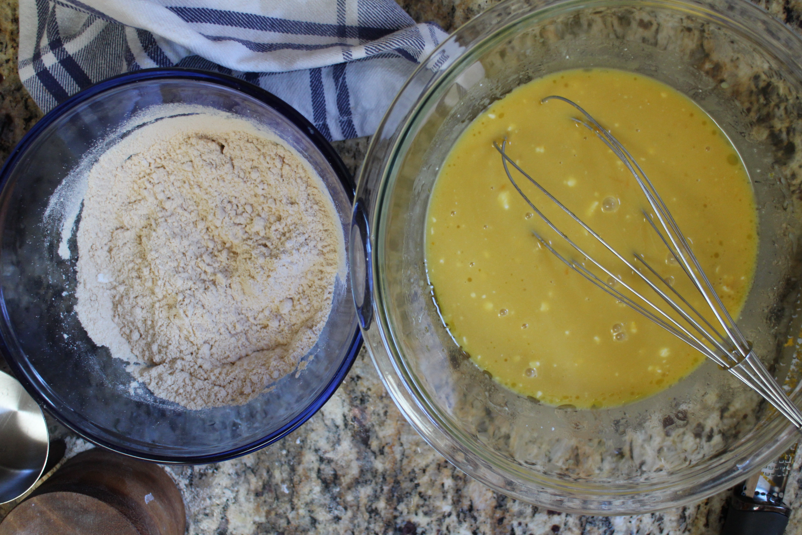 I doubled the recipe to fit the size of a bundt pan.  I also subbed out coconut oil for olive oil because I thought that would pair really nicely with the orange juice, and seamed “healthier” to me. Taking a quick glance at the doubled recipe, I noticed that the cake now called for a dozen eggs! I’m trying to avoid overindulgence here, so I needed to be creative to cut that down. I thought maybe if I separated the eggs, and beat the egg whites to add more volume, it would make up for cutting out half the eggs. I also added a bit more baking soda to help the cake rise, and the modifications seemed to do the trick!